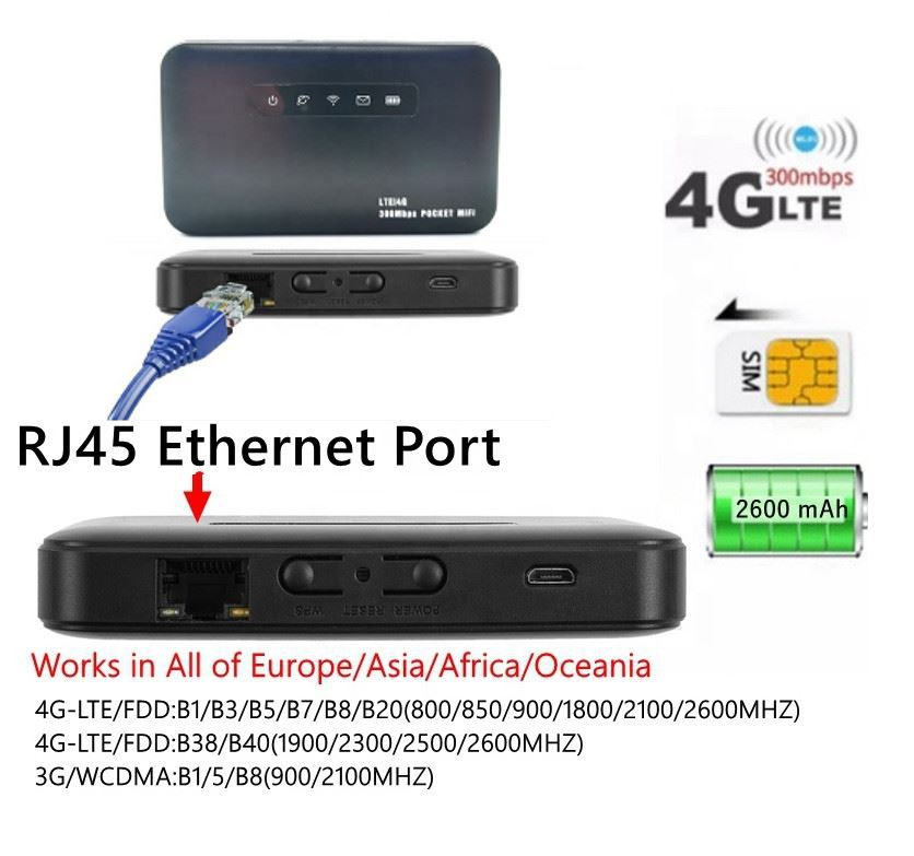Bandes 4G LTE: B1/3/5/7/8/20/38/40